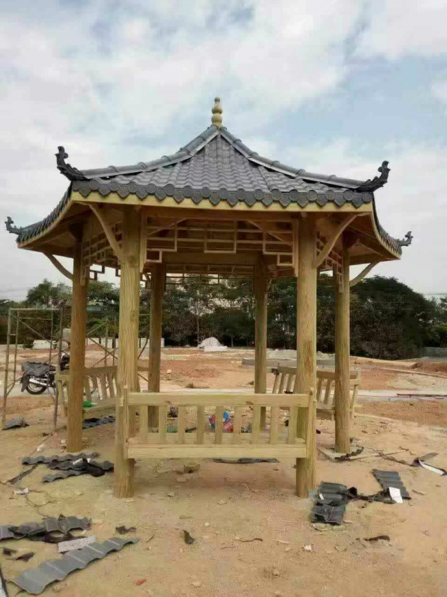 防腐木涼亭不禁作歇腳休息、擋雨之所,還能眺望遠處景色。可以說防腐木涼亭實用又及美觀。