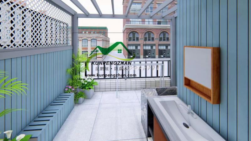 深圳龍崗惠州惠陽昆鵬展防腐木陽臺—花園陽臺設計案例圖